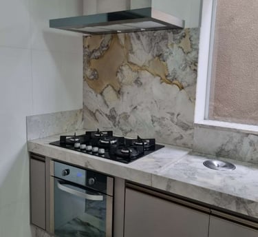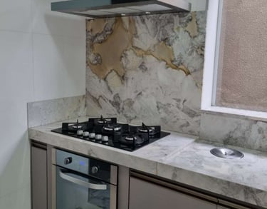 Forno a gás, exaustor e mesa de granito