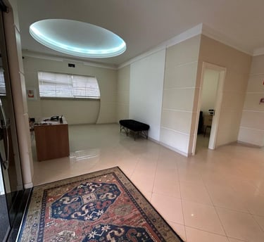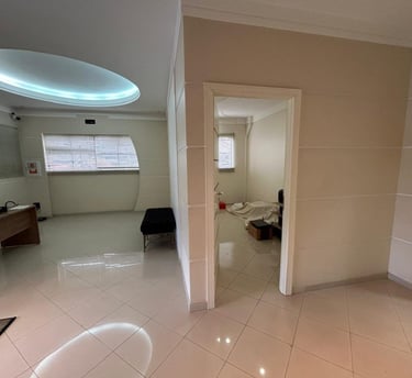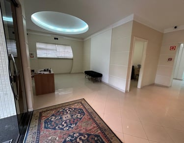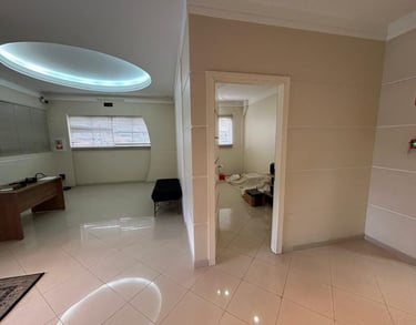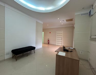 Pavimente térreo conta com recepção, 3 salas amplas e grande espaço para escritório com copa
